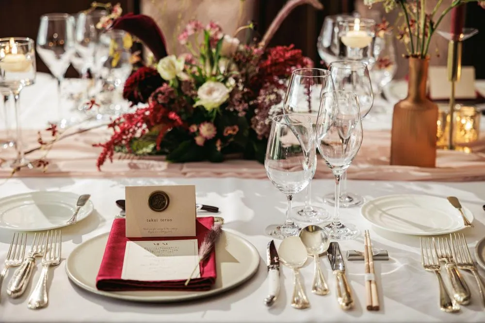 専属のコーディネーターが装花はもちろん、テーブルクロスやナフキンなど、お2人ならではの雰囲気を一緒に創ります。最新トレンドから王道まで、実際の先輩カップルのコーデもチェックできるのがうれしい。